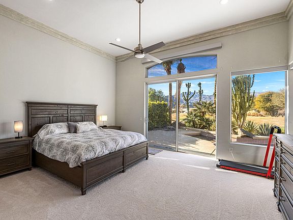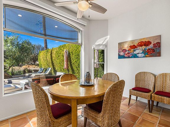 "Any lease of this Lot must be for at least thirty (30) consecutive days" RATES VARY BY MONTH Step into a masterpiece where every corner is designed to elevate your living experience. Your eyes will be drawn to the MAGNIFICENT VIEWS stretching across the 7th Fairway of the Dunes Golf Course, creating a daily panorama that's nothing short of breathtaking. As you enter, soaring ceilings create a sense of grandeur, complemented by a warm fireplace that beckons you to unwind. The living and kitchen areas seamlessly connect, providing a backdrop of unobstructed South-West VIEWS that redefine relaxation. The Master Suite is a private sanctuary, where a large slider and a wall of glass frame nature's masterpiece bedside. The generous bathroom becomes a personal retreat with a shower stall and a separate soaking tub, inviting you to indulge in luxurious moments. Guests are treated to an equally enchanting en-suite, where dual sinks and French doors opening to the courtyard create a retreat within a retreat. Need an additional bedroom? An option with direct access to the hall bath offers flexibility - perfect for an Office or 2nd Guest Suite. Feel the allure of Spanish tiled floors guiding you through a meticulously designed space. Custom cabinets and fresh paint add a touch of sophistication, while the mature cactus and flower gardens outside add a burst of color to your surroundings. Dining becomes an experience as French Doors lead you to an outdoor sanctuary, the perfect spot for morning espresso or moonlit toasts. The black-bottom pool and spa, adorned by custom Farley Pavers, become a private haven, offering relaxation with every ripple. Imagine the joy of living in a home crafted where every detail is considered. Beyond your oasis, the neighborhood offers a lifestyle - a gated community ensuring security and access to Old Town La Quinta, world-class dining, farmers markets, hiking trails, and the renowned La Quinta Resort & Spa. This is more than a home; it's an immersive living experience Seasonal or Annual Rental