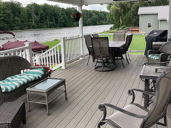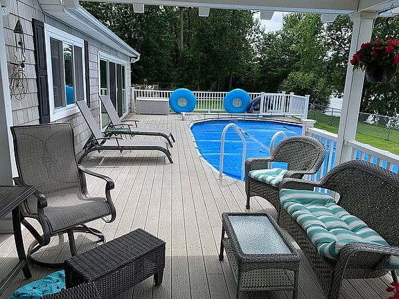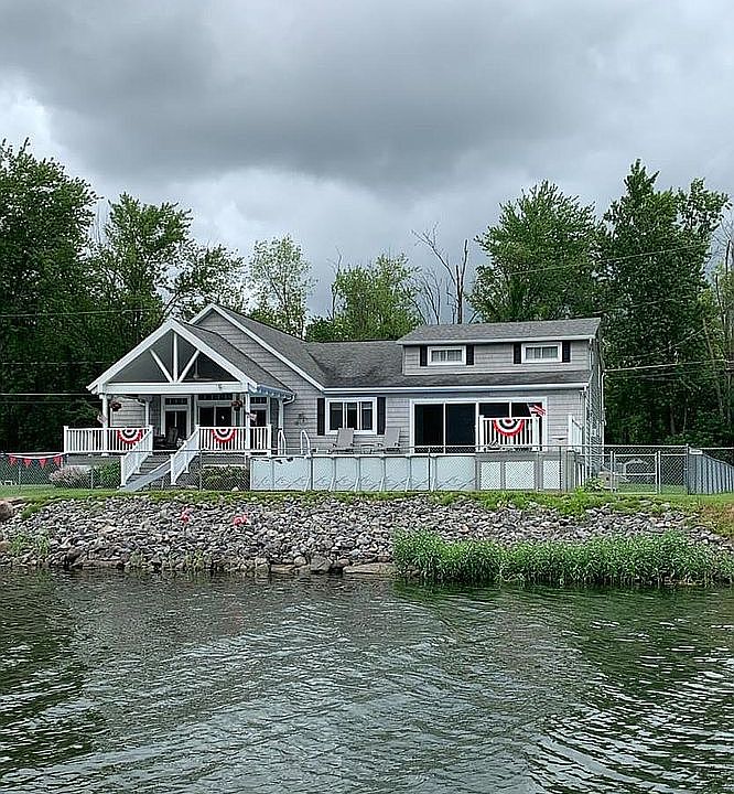 Impressive WATERFRONT home featuring 100’ on the Seneca River with a large electric BOAT HOIST. Spacious floor plan with gorgeous cherry hardwoods and cathedral ceilings. AMAZING kitchen featuring granite counter tops, breakfast bar and deluxe appliances. Sunroom with 16’ slider leading to huge partially covered deck and pool. First floor laundry and bathroom with jacuzzi tub. Second level has 4 bedrooms and 2 full baths. Oversized 2 car HEATED garage. Convenient location only seconds from Rt 57, in Liverpool schools.