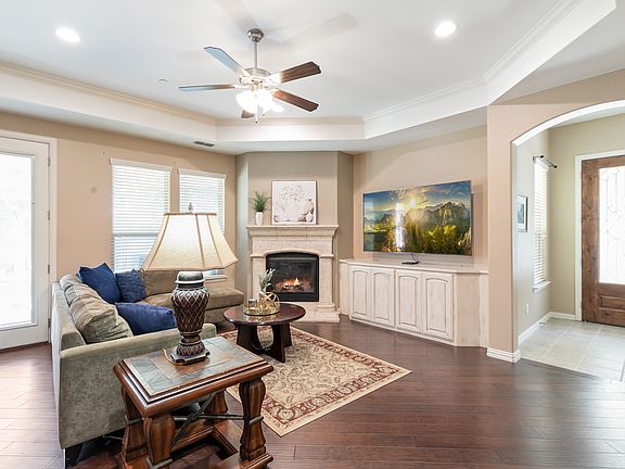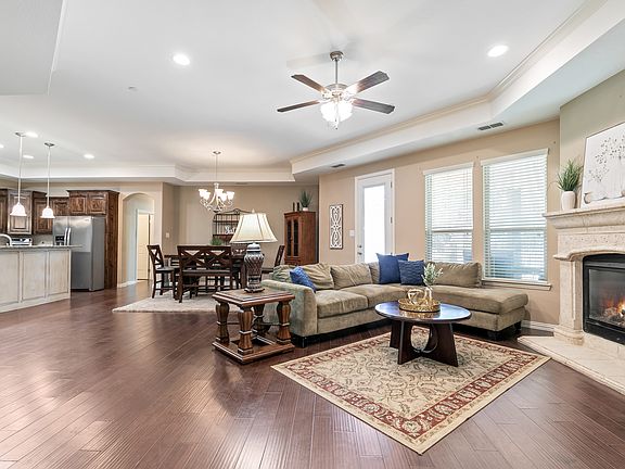 Excellent location, close to town square in a gated community. 55 and older with an open floor plan, excellent for everyday living and entertaining! Maintenance free and a most desirable lot with no neighbors beyond the patio. Pride in ownership and well taken care of. Engineered hardwood flooring in the main living areas. Gourmet kitchen with tons of beautiful cabinets, Island with sink, breakfast bar open to living and dining area. Granite counters. Built in China Hutch used for coffer bar. Stone gas log fireplace. Walk in shower in Master Bath, His and her closets. Larger office with built in desk. Can be furnished if desired. Call Rick- Eight one seven 614-5699.