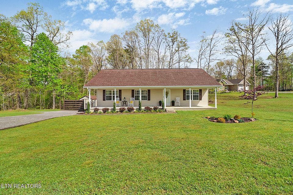 Beautiful upgraded 3 bedroom, 2 bath home located in well maintained area on almost 2 acres sitting in a great location in a country setting. This home has split floor plan, nice living room with fireplace, cathedral ceilings, central vacuum, master suite with master bathroom with walk-in shower and closet. The home features hardwood floors and tile floors as well as carpet in bedrooms. The kitchen has nice back splash and granite countertops with kitchen appliances that stay. The home has a nice front porch the length of the home and extended covered back deck to enjoy the outdoors. Enjoy a picnic or barbecue in your back yard that is cleared with an area designated for entertaining with a picnic table and firepit. The property also comes with storage building, high speed fiber optic internet, and sidewalk. This is perfect for your next home. Call today!