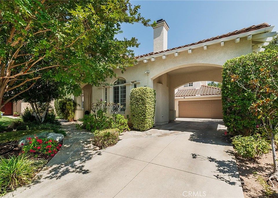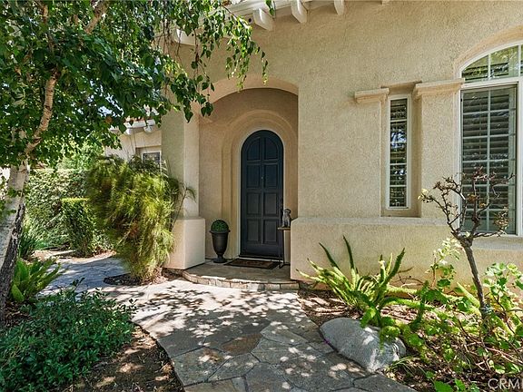 Located at the end of the cul-de-sac on the best street, with lush landscaping and privacy on a large lot , this home has it all! A remodeled gourmet kitchen featuring a 6 burner Thermador range with griddle and hood, undercabinet lighting, pull out drawers in the pantry, granite counter tops, stainless steel sink, double oven, and Kitchen Aid refrig. An adjoining alcove with a coffee station and wine bar add an unexpected and convenient feature for entertaining. The dining room opens up to the outside with French doors allowing for an alfresco feel. This home is great for families or retirees having a downstairs bedroom and full bath. The combination of plantation shutters, hardwood and stone floors and high vaulted ceilings give a warm open feel. The cozy living room has a fireplace and is great for reading and fireside chats. The kitchen opens into the family room as a great room and has the 2nd fireplace and surround sound. From there the sliding glass door opens on to the outside entertaining area, with a built-in BBQ with new burners, a sit-up bar, covered dining area and plenty of seating and lounging near the pool and firepit. The saline pool and jacuzzi have a gorgeous waterfall with a new pump, cholinator and heater. Upstairs the primary suite is large enough to have the 3rd fireplace and seating area and opens to a private covered deck. The suite has an upgraded bath with stone countertops, a walk-in shower and soaking tub, and a built-in closet .Two additional bedrooms upstairs plus an office/den and library nook provide all the space you’ll need for entertaining family and friends. A new $12,000 air conditioning system with a state-of-the-art Nest is app controlled. Tree lined streets are perfect for an evening walk to the community park. The oversized 3 car garage has built-ins with pleny of storage and workspace. Additional features include; an automated irrigation system,whole house interior fan for cooling without air conditioning, a Ring alarm system with cameras and a whole house water softener. This is an amazing house and will not last!