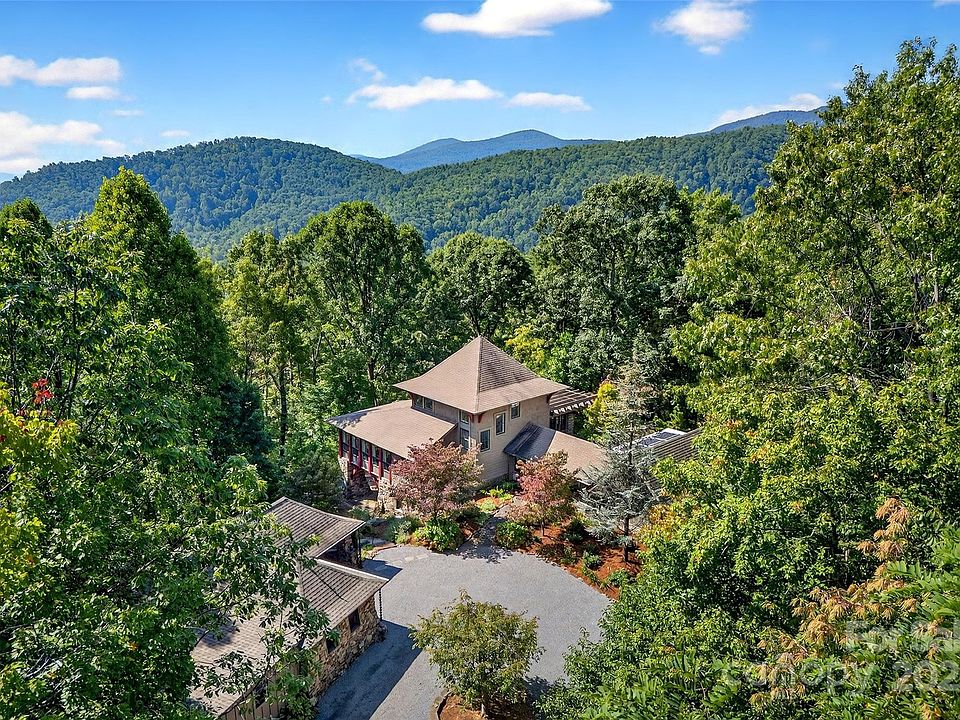 Welcome to your own private mountain retreat, where every detail has been thoughtfully designed to blend comfort, quality and natural beauty. Nestled on a professionally landscaped, flat-access 15.8 acre lot within the gated Gateway Mountain community, this property offers the perfect balance of serenity and convenience. As you arrive, a tree-lined pebble driveway sets the tone, guiding you toward a home defined by architectural grace that truly embraces its surroundings. The living room's soaring floor-to-ceiling windows that frame sweeping mountain views, gives the feeling of living among the treetops. Natural light pours through the open spaces, enhancing the home's unique design and craftsmanship. Imagine sipping your morning coffee on the screened porch while listening to the soothing sounds of the garden fountain or your guests taking a peaceful stroll down the back pathway to the charming 1 bed, 1 bath guest cottage. After a day exploring downtown Old Fort, nearby Black Mountain or Asheville, gather around the firepit under the stars or enjoy a game of shuffleboard or darts in the lower-level rec room while mixing your favorite drinks at the wet bar. Call it a night and retreat to the primary ensuite with its beautiful vaulted ceiling, walk in closet, walk in shower & heated bathroom floors. Guests have their options; a secondary ensuite with amazing views, downstairs bedroom, hallway twin bed hideaway (kid favorite) or the cozy guest cottage complete with microwave, coffee maker and mini fridge. The detached garage offers more than just parking- it features an oversized 1 car parking area with workbench & sink, a finished flex room with separate entrance, network ready and hidden storage closet plus expansive heated and cooled lower level workshop with toilet, utility sink, air compressor piping & parking space for your ATV or golf cart. This home was built for both beauty and efficiency, boasting a geothermal HVAC system, propane generator, solar energy system and a 750 gallon cistern. Every feature reflects a commitment to quality and thoughtful living. Gateway Mountain itself offers endless opportunities to explore: hiking trails, waterfalls, lake, fishing pond, picnic area, Friday happy-hours and seasonal gatherings.