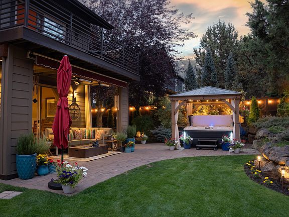 Home back on market at no fault of sellers. This turn-key home offers a fenced yard of tranquility & privacy. Steps away is a park w/ city/river views & walking trail to Deschutes River. Recent upgrades include a 50-yr roof w/ warranty, windows, exterior paint, all exposed wood sanded/stained/sealed, 240V EV outlet, hot tub gazebo, 16ft motorized awning, wine fridge, alarm system, landscaping, lighting/fans. See attached list in photos. Two impressive stone fireplaces, along w/ the large open kitchen sets the tone of luxury. The kitchen is complete w/ granite countertops, high-end appliances, prep sink, wine fridge & walk-in pantry. The quality-build extends to the bathrooms & throughout the home. The 3 BR, 2.5 BA w/ 1st fl office (potential 4th BR) provides function & luxury. Landscaping is lush & very private w/ water features, including a