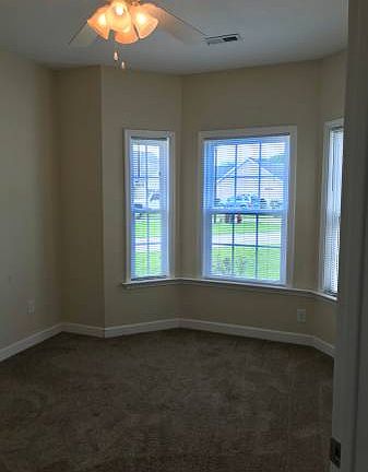 The beautiful house features 4 bedrooms, 2 bathrooms, kitchen, breakfast room, dining room, laundry room and 2-car garage. The Master bathroom has double sinks, a jacuzzi, a separate shower, and walking-in closets. Three other bedrooms all have their closets and share the second bathroom. There are ceiling fans and lights in every room. There is a backyard patio. It is available immediately.