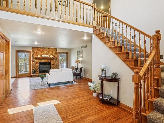 WATERFRONT w/a HUGE extra garage & long list of updates done! Relax on 3.1 acres w/120' frontage on Bullhead Lake, a no-wake lake w/67-acres & known for walleyes, panfish & perch! Walk-out, 2-story w/over 3400SF of living, has awesome features you will want in a waterfront escape! Large 2-story foyer, spacious living rm w/stone-gas fireplace, dining are w/bump out, very spacious kitchen w/SS appliances & floor-ceiling cabinets. Half bath & 1st-floor laundry rm by the ball hall to heated & insulated over 2.5 car garage. 1st-floor PRIMARY suite w/walk-in closet & full bath. 3 more BRs up PLUS-32x13 bonus rm above garage. Zoned heating! Fin & walkout LL w/rec rm & full bath. AWESOME 45x42 Cleary bldg w/12' side walls & 4 doors. PRE-CERTIFIED & great updates! 48 hr bind, no bind wknd/hldys
