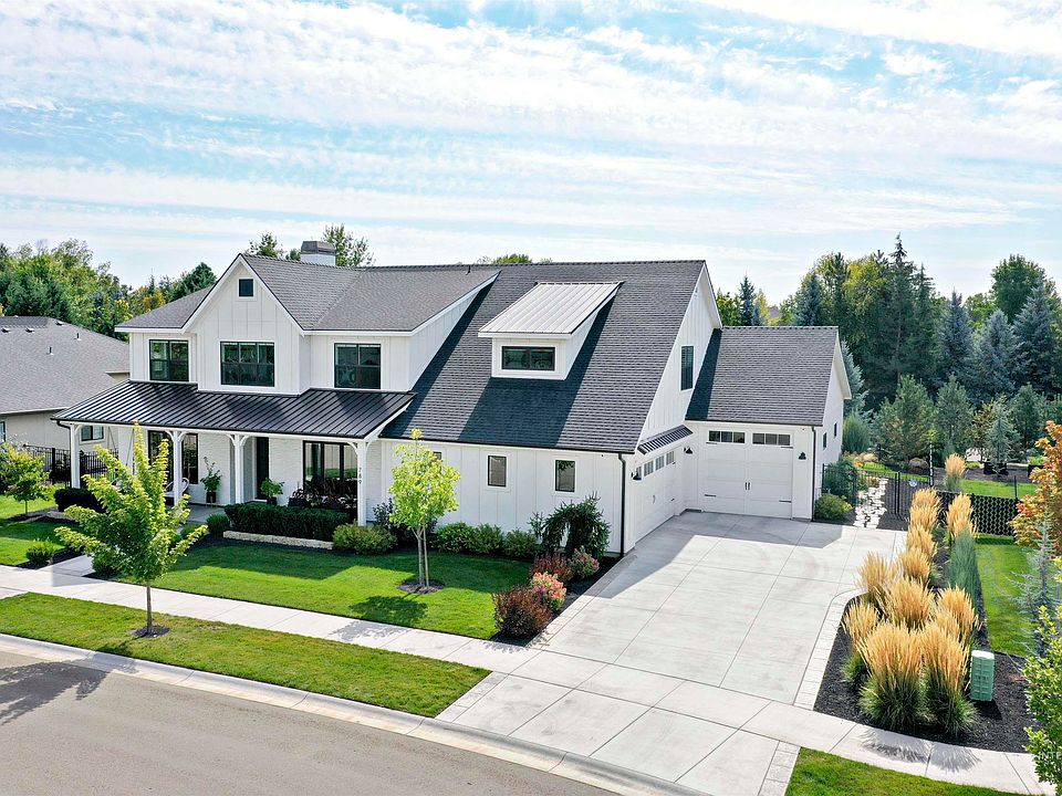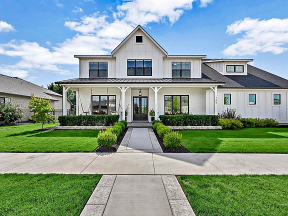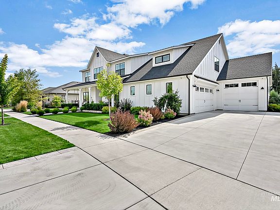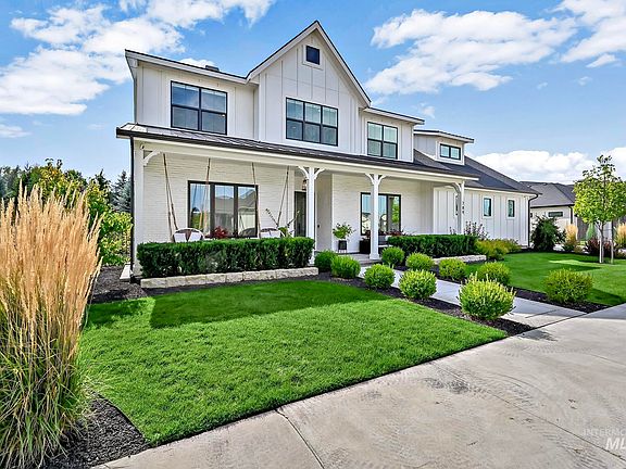 Located in one of Eagle’s most prestigious communities, this custom elevated modern family farmhouse offers the perfect blend of elegance, comfort, and outdoor living. As a resident of Mace River Ranch, you’ll enjoy exclusive access to the Boise Greenbelt, Boise River, a resort-style pool, private clubhouse, a scenic lake for kayaking and paddleboarding, stocked fishing ponds, miles of walking and biking trails—all just steps from your front door. Inside - open-concept living spaces, soaring ceilings, and designer finishes. The gourmet kitchen features high-end Thermador appliances, triple ovens, a built-in refrigerator, and a generous butler’s pantry—perfect for both entertaining and everyday family living. Oversized windows fill the home with natural light and offer picturesque views of the lush, professionally landscaped backyard and mature trees, seamlessly connecting indoor and outdoor living. The primary suite is a private sanctuary, complete with a spa-inspired bathroom, a stunning double-sided fireplace, a custom walk-in closet, and an additional private flex space ideal for a reading nook, nursery, or second office. Multiple flexible living areas throughout the home offer room for a home office, gym, media room, or guest suite, all finished with exceptional craftsmanship and premium materials. Located minutes to downtown Eagle, top-rated schools, dining, and shopping.