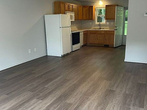 Recently installed easy to maintain wall to wall Luxury Vinyl Plank Flooring. Open layout Living room/Kitchen. All electric kitchen with garbage disposal, electric stove, and over-range microwave. Central HVAC electric heat pump. NO SMOKING inside of apartment and smoking outside requires proper & safe disposal of butts. Private back patio overlooks the woods; quiet and peaceful. Individually metered water not included in rent. Washer and Dryer hookup. The flat and open grassy 0.3 acre common yard is great for pets or play. Walking distance to a running/walking trail. Ground level apartment with easy access to parking.