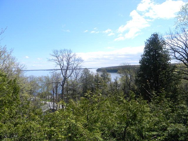 Great home at the tip of the peninsula. The home is set on a wooded bluff with almost 3 acres of land and fantastic views of Wisconsin Bay, Detroit and Plum Islands. Private master suite with loft, 2 guest bedrooms, an efficient kitchen and great room. Two fireplaces one is in the unfinished walk out lower level. Property is dividable.Heat is hydrostatic.