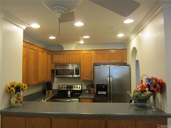 Welcome home!!! Peaceful resort style living in the much desired "El Dorado Lakes" private community! Perfect cozy 1 bedroom, 1 & 1/4 bathroom, upgraded & remodeled downstairs corner end unit. This lovely condo has many features laminate wood flooring, recessed lighting & crown molding throughout, spacious bedroom with air conditioning, remodeled Kitchen with stainless steel appliances, nice cozy patio area with storage room & stunning views of the lake. The lakes community offers many amenities two swimming pools & Spas, Tennis Courts, Rec Center, with pool tables, ping pong table, gym & Sauna. Conveniently located near El dorado park & Nature center, Area shopping & Restaurants, 605 freeway.