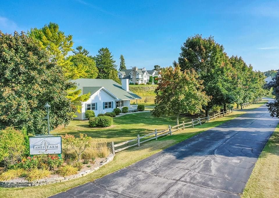 Right where you want to be! This charming, well-maintained freestanding unit in desirable Eames Farm is a rare offering. Enjoy single-level living with two bedrooms, two full baths, sunroom, and den that was formerly a third bedroom and can easily be converted back. Beautiful hardwood floors, skylights, and updated kitchen and baths make this home completely move-in ready. Attached two-car garage, lovely and private patio with meadow views, and the convenience of being a two-minute bike ride from downtown Egg Harbor shops and restaurants, Main Street Market, the Peg Egan PAC, and the village beach. An easy-living, year-round home or your perfect Door County getaway. Association dues are $1,200 per quarter plus $200 annually for the garage.