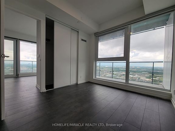 Absolutely Stunning! Corner Unit at Transit City 5 Condos! Located In The Heart Of Concord. Large Balcony with Breathtaking views from the 42nd floor. Open concept living/dining room with Floor-To-Ceiling Windows & a Sleek/Modern Kitchen Complete With B/I appliances, backsplash & Quartz Countertops. 2 spacious bedrooms (No Den) & 2 full baths. Ensuite laundry room. 2 minute walk to Subway Station, Easy Access To Hwy 400 & 407. Minutes To Vaughan Mills, Ikea, Costco, Walmart And York University. Parking, Locker & High Speed Internet Included. Wrapped Around Balcony Over Looking South East With CN Tower & Over 24000 sq.ft Mega Amenities Including Gym, Running Track, Squash court, Swimming Pool & More!