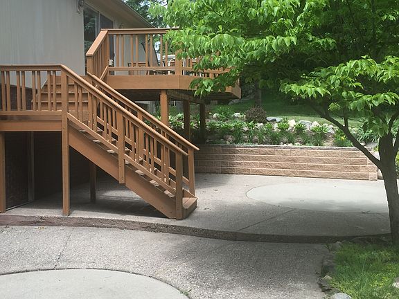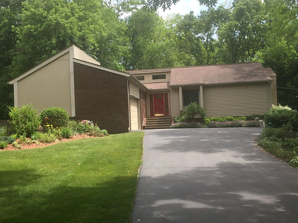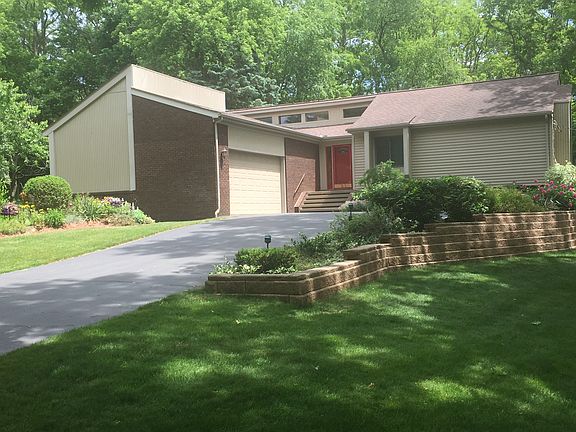 Contemporary Ranch attached 2 car garage, with finished walkout lower level to include family room and fireplace, bedroom, and 3/4 bath. Wooded lot for full privacy. Maintenance free exterior brick and vinyl. Raised deck with lower level free form patio. Contemporary single garage/shed. Cherry kitchen cabinets with granite counters. Ceramic bath & shower walls. Granite sink tops. Brick fireplaces living room and lower level. First floor laundry. 6 panel doors. Walk in closet in master bedroom. Skylights in kitchen and main bath. Kinetico water softener. Sprinkler system. Driveway lights.