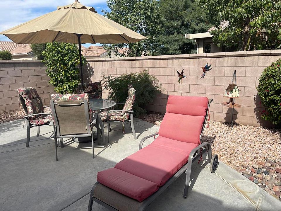 Furnished patioCitrus treesFaux electric fireplaceWater fountainCustom interior paintStainless appliancesAlumawood patio cover