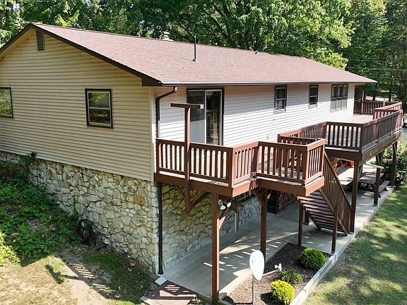 PRICE REDUCED !! Countryside 3 bedroom Ranch with walkout finished basement which includes summer kitchen, large open living areas, bathroom and multiple storage rooms. Wrap around main level porch/decks. Backyard is shaded with mature trees a true park like setting. Plenty of Vehicle storage which includes a built-in 2 + oversized basement garage with Sink, a det.45x30 garage and workshop, additional carport, circular driveway in front yard, additional side driveway. Interior of home has a nice open living area with oak kitchen cabinetry, recessed ligting, tiled entry, main bedroom suite has a private deck overlooking backyard. House is very efficient with zoned hot water boiler heating, central a/c, on-demand hot water system, woodburning stove in basement for chilly evenings. Recent updates include; laminate plank main level, carpet and tile on both main level and walkout basement level. Central Vac System, 8x16 cold storage room in basement under front porch is perfect for canning and root vegetable storage.