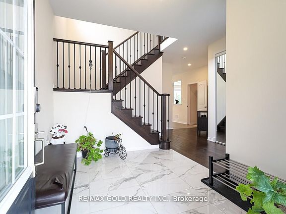 Welcome to this beautifully maintained, less-than-four-year-old home situated on a wide, pie-shaped premium lot backing onto a scenic ravine. This all-brick home boasts a premium finish and exceptional curb appeal in a quiet, family-friendly neighborhood. Inside, you'll find a custom-built kitchen with upgraded cabinetry, high-end flooring, and premium interior doors throughout. The open-concept layout seamlessly connects the kitchen, dining, and living areas, featuring a cozy gas fireplace and large glass doors that open to the backyard deck perfect for entertaining or relaxing outdoors. Natural light floods the space through large windows, including legal egress windows in the basement that offer future development potential. Off the kitchen, there's a versatile room that can serve as a walk-in pantry or a private home office. A convenient powder room completes the main floor. Upstairs, you'll find four generously sized bedrooms, including a luxurious primary suite with a walk-in closet and a4-piece ensuite bathroom. The second floor also features a separate laundry room for added convenience. The full, unfinished basement includes a rough-in for a future bathroom and a cold-room, offering endless possibilities for customization whether it's a home gym, additional living space, or an in-law suite. Outside, enjoy a private backyard enclosed by a vinyl privacy fence and surrounded by well-maintained landscaping and lush green grass.