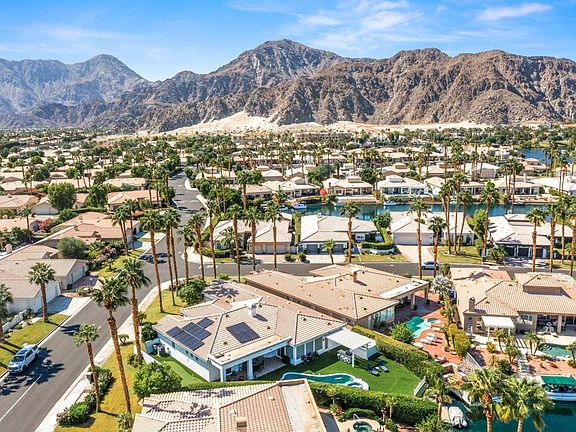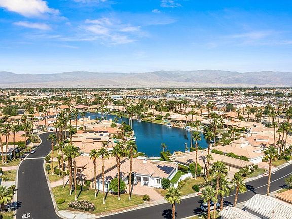 Experience the epitome of waterfront living at Lake La Quinta. Nestled on a picturesque corner lot by a stunning 25-acre lake, this exquisite home offers breathtaking views of both the tranquil water and the majestic Santa Rosa Mountains. Spanning over 3,000 square feet, this elegant residence includes 5 spacious bedrooms and 3.5 baths, alongside a recently upgraded chef's kitchen. Step into your private backyard oasis, complete with a luxurious pebble tech pool and spa. The home was recently upgraded with over $300k in repairs and upgrades including a new AC, solar panels, pool equipment, floors, baseboards, laundry room, and pergola. Additionally, enjoy direct lake access via your own private dock. Lake La Quinta provides an exclusive community atmosphere, with a 24-hour guard-gated entrance and an array of amenities including fishing, a 3-acre park, tennis courts, a community pool, barbecue facilities, and boat docks and launch area.
