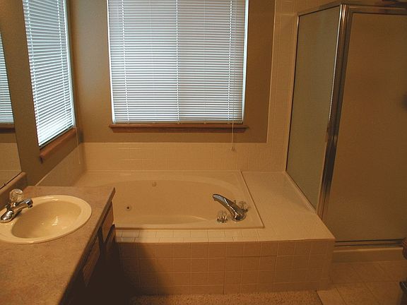 Great home close to trails, lake and schools. Kitchen features slab granite counters, stainless steel appliances, breakfast nook with deck and nice view. Formal dining room and large family room with cozy fire place. Master has 5 piece bath with whirlpool tub and walk in closet. Walk out basement has storage plus large dedroom with generous sized built in book cases, 6 foot whirlpool tub with marble surround, slab granite vanity top and a vessel sink. Fenced yard has sprinkler system plus an area for car, trailer or boat parking and zeriscape front yard.