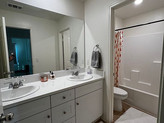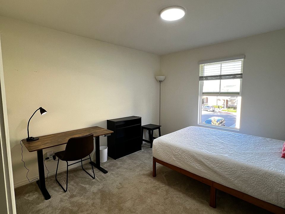 This120 sq ft bedroom is located in a 2020 newly built home within a quiet, gated community in Highgrove. The room includes a bathroom featuring a dual-vanity setup, offering both comfort and convenience. Residents have full access to the shared kitchen and living room, as well as an in-home washer and dryer. Street parking is readily available(option to park in garage at owners discretion). The homeowner is out of town most of the week, providing a calm, low-traffic living environment. Ideal for someone seeking a modern, peaceful space with added privacy.