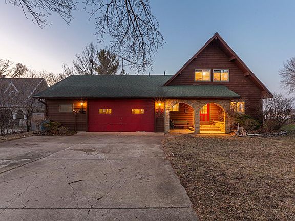 Charming lakefront home built with love. This property offers timeless architectural character and is nestled on the tranquil shores of Cedar Lake. This exquisite home combines the warmth and natural beauty of dark wood siding with distinctive architectural details that exude character and charm. The striking exterior, with its rich texture and earthy tones, perfectly complements the surrounding landscape, offering breathtaking water views from nearly every room.