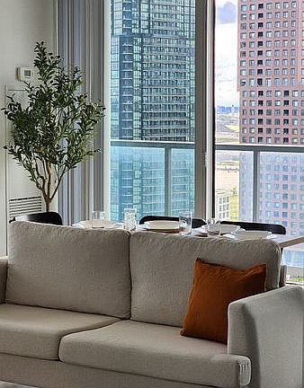 Corner unitAbundance of natural lightOpen conceptQuartz countertopPremium appliancesFloor to ceiling windows