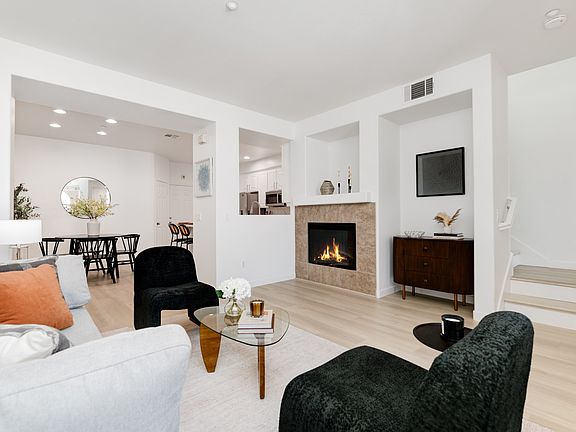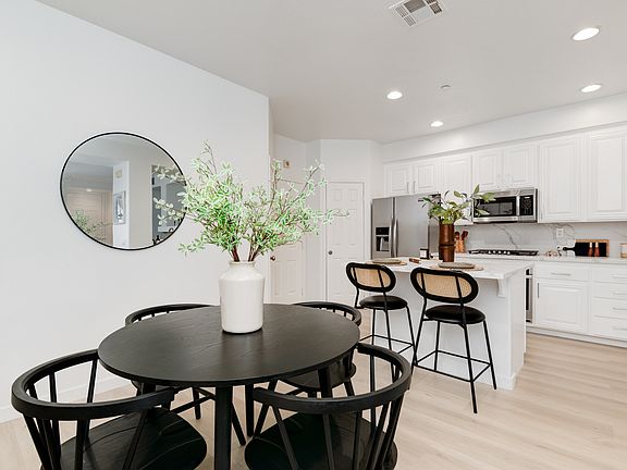 Welcome to 7895 Via Montebello, a beautifully renovated townhome in the highly sought-after Cortina community of Torrey Highlands. This spacious two-bedroom, two-and-a-half-bath residence has been thoughtfully upgraded by its original owner to reflect a clean, contemporary aesthetic. Airy interiors are enhanced by wide-plank LVP flooring, a custom white oak staircase, and refined finishes throughout. The kitchen is a true showpiece, featuring sleek quartz countertops, a full-height backsplash, an eat-in island, a spacious double pantry, and upgraded stainless steel appliances including a GE Smart Convection Oven and GE Profile cooktop all anchored by a striking Blanco sink. Bathrooms have also been elevated with quartz surfaces, modern lighting, new fixtures, custom mirrors, and frameless glass shower enclosures. Enjoy a large entry patio ideal for outdoor entertaining, and a rare two-car garage an upgrade over many neighboring units. The Cortina community also offers access to a beautifully maintained pool, spa, and clubhouse for residents to enjoy. Perfectly situated just a short walk from shopping, dining, and minutes from the 56 freeway, this turnkey home offers effortless access to all that North County San Diego has to offer within a tranquil, private community setting.