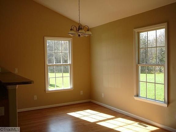 NEW HOME. 1449 SF 3BR/2BA w/2 car garage. This spacious home has ceramic tile and hardwood laminates throughout the home. Vaulted ceilings, custom built hardwood cabinets and arched passageways are just a few of the custom touches. Home is located on partially wooded lot in country setting in Northeast Guilford County. It's only minutes to schools, shopping and dining. It's only minutes away from Greensboro $152,500