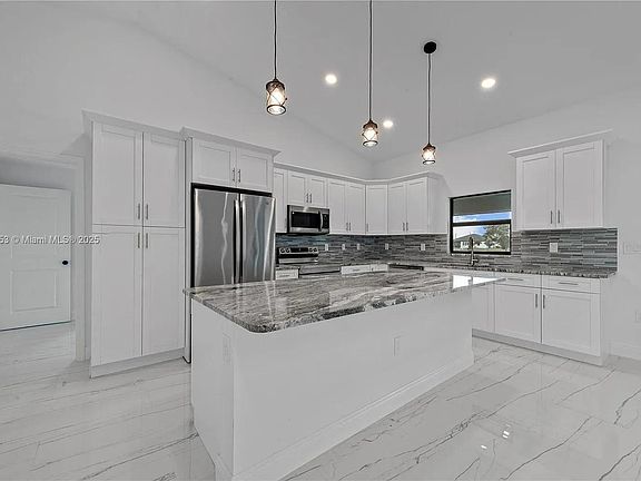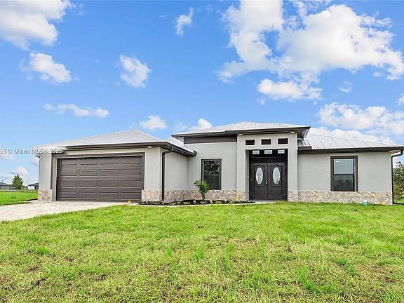 New 2023 home on 1.25 fully fenced acres – NO HOA! Featuring 4 bedrooms (2 master suites), 3 full baths, a den/office, granite countertops, center island, stainless steel appliances, open-concept layout, and lots of natural light. Indoor laundry room with washer & dryer, oversized screened lanai, paved driveway, and beautiful fruit trees. Perfect for families, pets, gardening, or recreational vehicles. Great location near SR-80 with quick access to Fort Myers, Cape Coral, airport, beaches, and more. Move-in ready!