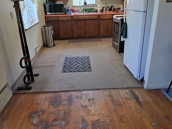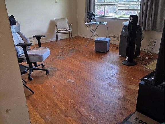 • Original hardwood floors throughout main level. Hardwood floors show some staining from accidental soda spills. These are cosmetic in nature and not related to burn or fire damage and can be refinished to restore their natural beauty!