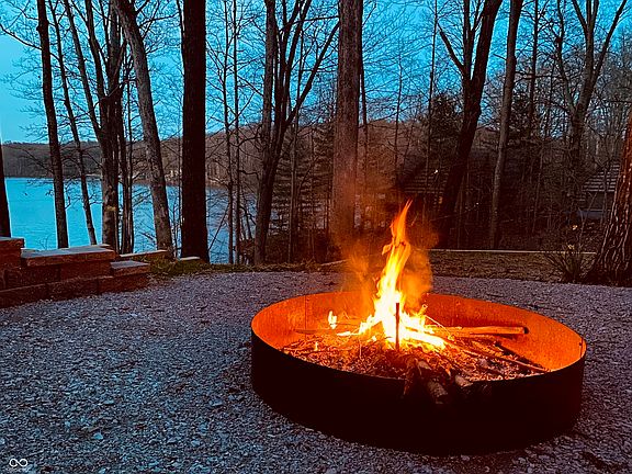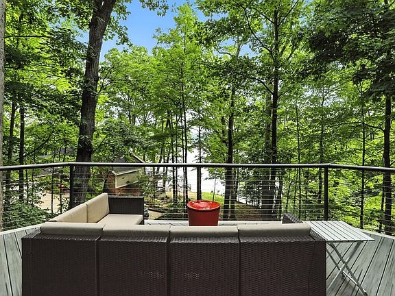 Private lakeRec roomPrivate beachCozy gas fireplaceLow maintenance upper deckHot tubFormal dining