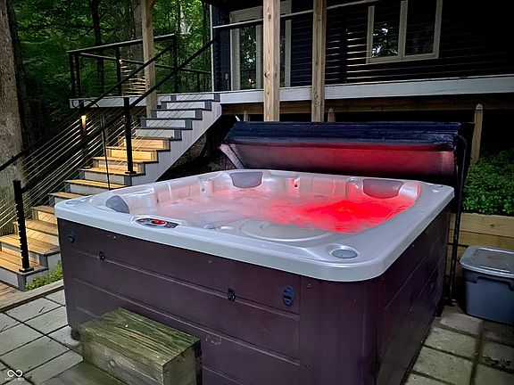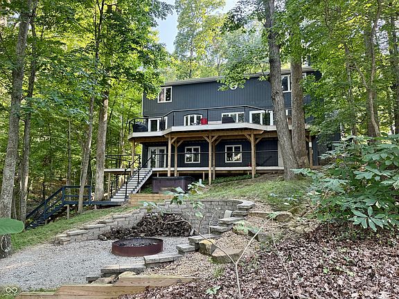 Beautiful view of Lamb Lake on 1.58 wooded acres. Nicely updated 2 story w/walk out basement. Primary suite w/huge walk-in closet and full bath and lakeview from bedroom window. Darling reading nook or playroom on upper level. Roomy kitchen w/loads of counters, cabinets, center island & breakfast room opening to upper deck with lakeview. Spacious great room w/cozy gas fireplace and doors opening to upper deck. Formal Dining, office & half bath also on main level. Low maintenance upper deck installed in 2021 is approx 1,550 sq ft of outdoor entertainment space! Lower walkout level has laundry room, workshop, full bath, and 29x24 flex space for rec room, family room or whatever your needs may be! Opens to lower deck on lakeside to access hot tub & firepit sitting area for even more outdoor enjoyment! Stairway leads to boat parking in back of quiet cove. Hop in your boat and head out to enjoy boating, fishing, skiing, tubing, private beach, & wildlife on the finest private lake Indiana has to offer! Be sure to read attached list of Special Features & Updates