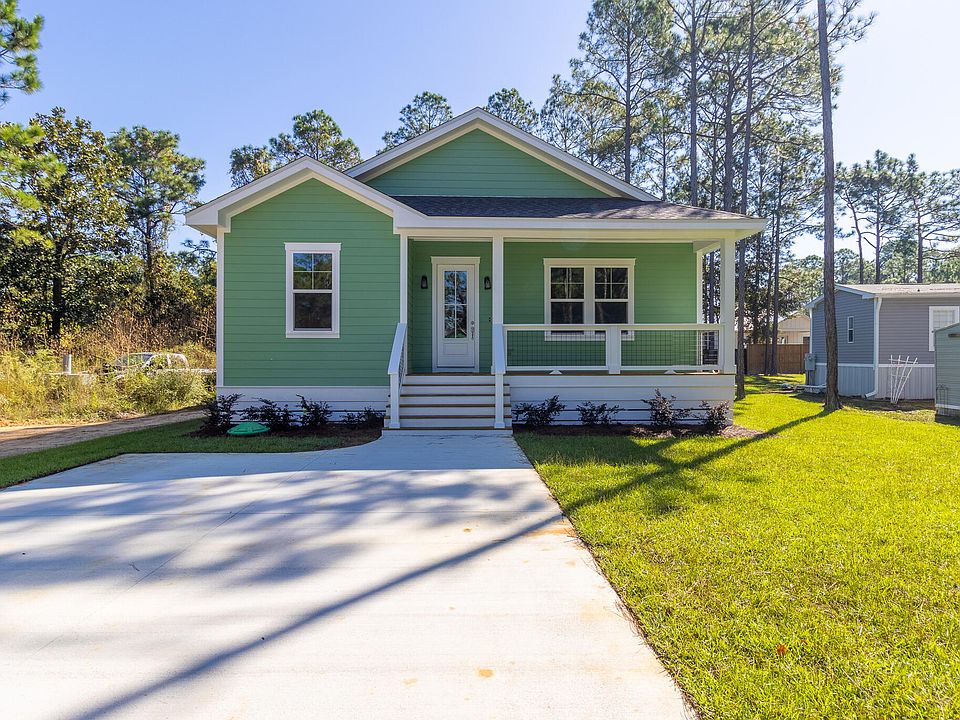 This beautifully finished 3 bed, 2.5 bath home offers 1,398 sqft of stylish comfort just 10 minutes from the beach! Featuring LVP flooring, tile showers, shiplap accents, vaulted and trey ceilings, crown molding, and a fenced backyard -- all with no HOA. Prime location near the bay and the future Chat Holley park & amphitheatre makes it perfect as a full-time home or a high-performing rental! Construction complete as of 10/1/2025! Seller will install a wood privacy fence with an acceptable offer.
