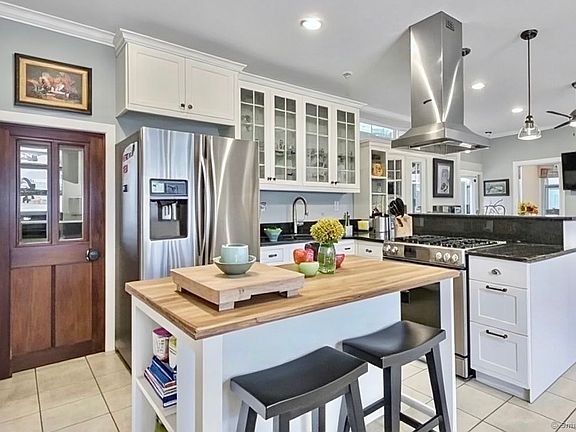 Victorian Coastal Gem resting in Laurel Beach with Water Views! Discover timeless elegance and shoreline charm in this exquisite Victorian residence, ideally located on a prime corner lot within Milford's coveted Laurel Beach Association. Just steps from private beach access, this exceptional home offers over 4,000 sq ft of beautifully crafted living space, plus 1,000+ sq ft of expandable attic space featuring rooftop deck. Classic architectural details abound-from original pine hardwood floors and soaring 10-foot ceilings to a stately wood-burning fireplace and french doors that open to a sun-drenched family room with custom bar and full bath. The spacious eat-in kitchen flows into a cozy den, creating an inviting atmosphere for entertaining or everyday living.The main level bedroom and full bath offer flexibility for guests or multi-generational needs. Upstairs, you'll find three oversized bedrooms, a fully updated bathroom with custom tile shower, and a generous primary suite with room to create a luxurious en suite. An additional bonus space above the garage functions perfectly as a game or recreation room. Wrapped in enclosed porches on both levels, the home captures panoramic views of Long Island Sound, making it the ideal retreat in every season. This is a rare opportunity to own a piece of historic New England architecture blended with the best of coastal living. Come put your personal touches on this home and enjoy the lifestyle that only Laurel Beach can offer!
