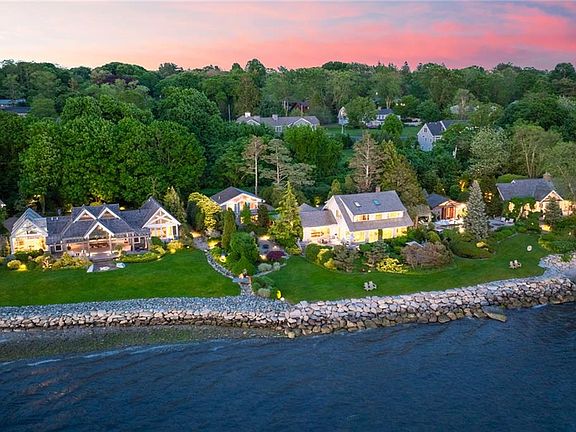 This extraordinary private coastal estate, with its captivating Narragansett Bay views and meticulously landscaped grounds, is an ideal place to gather with family and friends. Poised at the end of a private lane, the 1.5 acre property spans 456 ft of shoreline, connecting four main structures with natural pathways and elegant teak decks. Sweeping bay views grace every room, and lush landscaping surround this private retreat. The “Bungalow", a one-bedroom retreat, boasts soaring ceilings, New England barn beams, and glass doors opening to the lanai with a sunken dining table with sunset views and beach access just steps away. Adjacent, an infinity-edge saltwater pool, waterfall, and jacuzzi offer bay views, anchored by a pool cabana with a stone shower, bathroom and sauna. Opposite the pool, the "Main House" invites gatherings in its expansive living, family and dining rooms with sliding doors and oversized windows. A well-appointed main kitchen, wine room, and galley pantry facilitate entertaining with two ensuite king bedrooms on the second floor. An herb garden separates the "Main House" from the "Cottage", a quaint 2 story abode with gym/studio and ensuite king bedroom. At the far end of the property, the "Tea House" features an enchanting outdoor teak pavilion with soaring ceilings, a sunken dining table, ensuite king bedroom, galley kitchen and state-of-the-art greenhouse. Raised garden beds and two car garage complete this impressive estate.