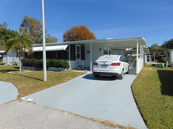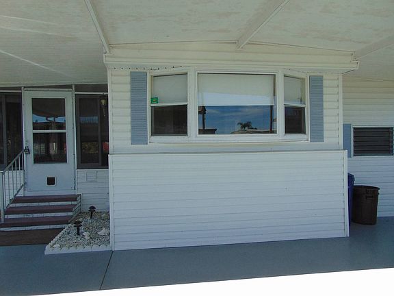This 1972 single-wide home is very spacious (12' x 56') and priced for a fast sale. Home has a roof-over; vapor barrier and insulation is 7 years old; laminate flooring throughout; AC is 3.5 years old; newer vinyl windows throughout; exterior vinyl siding; washer and dryer is in the shed and may need to be replaced; kitchen is loaded with cabinets and cupboards; frig needs painting or replaced; excellent park location for privacy on a pet friendly lot. Super nice floor-plan with one bedroom in front and one in the rear of the home. Shed is around the corner of the home. Exterior is vinyl sided. Landscape needs TLC. Front Lanai is 19-4 x 9-9 with vinyl windows and carpeting over concrete. Living room = 12-8 x 11-2; Kitchen & eating area = 12 x 11-2; front BR = 11-2 x 9-6; rear BR = 11-2 x 11-7 Recurring monthly lot rent as of Feb 1, 2021 = $854.56 and includes sewer, water, basic cable, non-ad valorem tax, pass thru tax, trash pick-up & lawn maintenance.