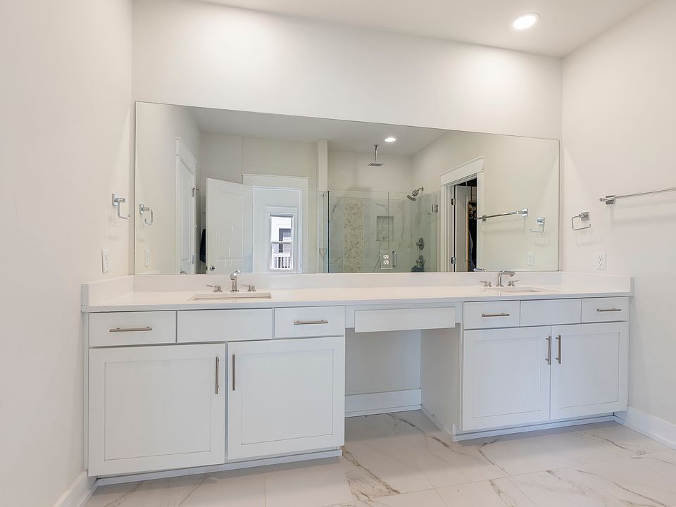 The first floor is anchored by an elegant kitchen overlooking the living room, complemented by a dedicated laundry room and an additional half bath. A downstairs bedroom with ensuite bath and double closets provides a private retreat, ideal for guests.