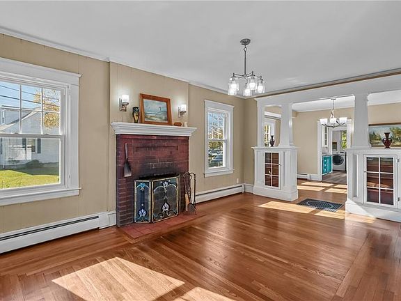 Step into the old-world charm of this unique 1920's Craftsman Bungalow set on an oversized corner lot in a super desirable neighborhood of Warwick. The wood-burning fireplaced living room with gorgeous mill-work dividers opens to the formal dining room, both with gleaming, recently redone hardwood flooring. Vintage kitchen with brand-new wood countertops has a newly created nook for the first-floor laundry and comes fully applianced. A cozy bedroom or den and a full bath with an original claw-foot tub complete this side of the house... Now for the SURPRISE! The home features a large primary suite addition complete with spa-like bath, a gas-fireplaced family room, work out room or studio and its own separate entrance - the possibilities are endless! Newer roof, vinyl siding & replacement windows make for an energy efficient environment and low maintenance. This is not your grandmother's bungalow, but it has been in the same family since it was built in 1926 so don't miss out on this first time offering!