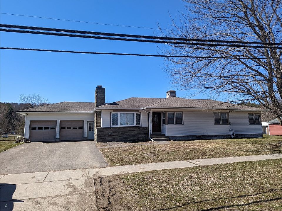 Check out the virtual tour! Beautifully updated ranch style living. Intricate central stone fireplace with passthrough from garage. Amazingly 220 sq foot kitchen with central island and 84 sq. ft. matching granite countertops. All the amenities of an industrial kitchen for entertaining, matching stainless steel appliances, 32 hickory hardwood cabinets, farm sink with cutting/straining accessories, ceramic tile back splash. Eat in or take the party to the Grand Room. Bluestone flooring, picture widows/sliding doors that looks out onto 19x12 deck. Include Master suite with double closets, and private full bath. Hidden elements of a master design throughout. Attached 2 bay garage with mop sink 19x19.