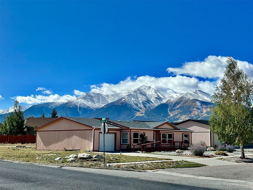 Major price improvement! This home is located on a .24 acre corner lot located within Buena Vista city limits convenient to local schools, downtown restaurants, entertainment, and shopping. Main interior of house has vaulted ceilings and is bathed in natural Colorado sunshine. Master bedroom has walk-in closet and en suite full bath. Second full bath can be shared by bedrooms 2 and 3 which also have closets. House has one car extended length attached garage with built-in shelves for storage. 2 or more parking spaces also available in the paved driveway.