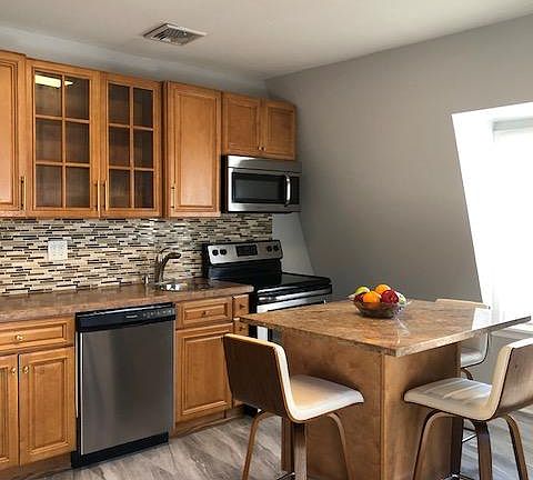 Renovated light and airy 2 Bedroom apartment, central air and heat, 3rd floor , tiled bathroom. Designer kitchen with stainless steel appliances including dishwasher, refrigerator and microwave, The washer /dryer is in the apartment, front and backyard, patio and parking. Walking distance to Montclair Center ,conveniently located to restaurants , shopping , Welmont Arts Center , library , walk to buses ,train station direct to NYC , and Montclair State University ,close to schools and parks. NO FEE ! No smoking. Owner pays for water and sewer . renter is responsible for gas and electric.