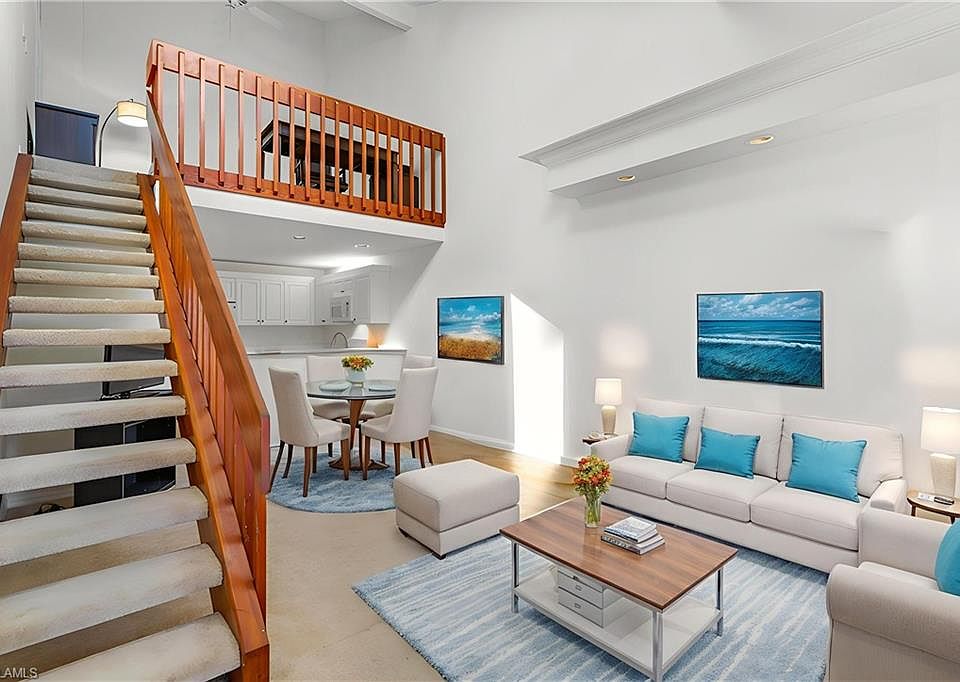 PRICED TO SELL – INVESTMENT OPPORTUNITY IN A PRIME NORTH NAPLES LOCATION! Bright and spacious 1-bedroom, 1-bath condo + loft/den in Emerald Woods, located within WALKING DISTANCE TO MERCATO and just MINUTES TO THE BEACH! This charming residence is full of potential and ready for your personal touch. With a flexible layout offering 1 bedroom, 1 bathroom, and a generous loft/den—perfect as an office, guest area, or additional living space—there is even the option to add a second bathroom to enhance functionality and value. The open-concept design is highlighted by vaulted ceilings and large windows that flood the space with natural light, creating an airy, inviting atmosphere throughout. Two private outdoor decks provide ideal spots to enjoy morning coffee. Additional interior highlights include a new in-unit washer and dryer, offering convenience and modern functionality. This condo provides a fantastic canvas for updates and improvements, giving buyers the opportunity to renovate, customize, and build equity in a highly desirable neighborhood. Emerald Woods is a sought-after North Naples community known for its relaxed lifestyle and unbeatable location. Residents enjoy access to a sparkling community pool, spa, and social room, offering both recreation and opportunities to connect with neighbors. Just minutes away, you’ll find Mercato’s premier shopping, dining, and entertainment options, as well as Naples’ world-renowned beaches, making it easy to enjoy everything the area has to offer. Whether you’re seeking a full-time residence, seasonal retreat, or investment property, this condo combines excellent amenities, an ideal location, and incredible value - the perfect opportunity to experience the best of North Naples living! THIS PROPERTY QUALIFIES FOR A 1% LENDER INCENTIVE IF USING PREFERRED LENDER, INQUIRE FOR MORE DETAILS** Renderings that showcase furniture have been virtually staged.