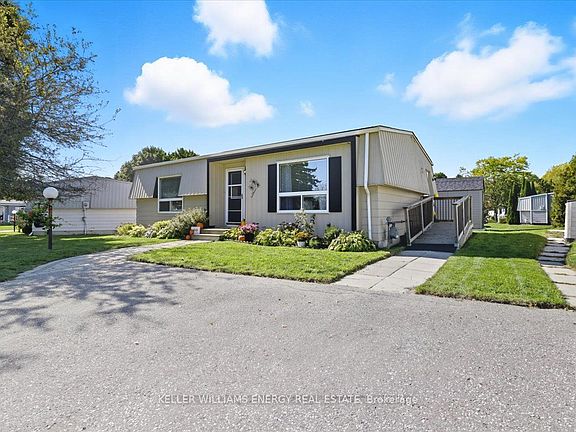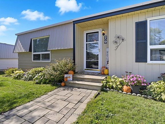 Welcome to 79 Fairway Drive, a charming bungalow tucked away in the sought-after adult lifestyle community of Wilmot Creek, just steps from Lake Ontario. Here, you'll find the perfect blend of peace, privacy, and vibrant community living, all within minutes of Newcastles charming downtown shops, restaurants, and cafes. This lovingly updated 2-bedroom, 1-bathroom home offers a bright, beach-inspired interior with hardwood floors and crown moulding throughout. The open-concept living area flows effortlessly to your private back deck, ideal for morning coffee or a glass of wine at sunset. The stylish kitchen boasts a double stainless steel sink, gleaming countertops, a tumbled marble subway tile backsplash, built-in pantry, and a convenient nook for your stackable washer and dryer. A side entrance with a ramp provides easy access from the driveway, making unloading groceries a breeze. The renovated 3-piece bathroom feels like a spa retreat with its walk-in shower, built-in bench, and glass enclosure. The spacious primary suite features a large closet, while the second bedroom offers versatile space for guests, a home office, or hobby room. No compromises here. Step outside to enjoy beautifully landscaped gardens, a large back deck complete with a 10' x 10' gazebo, plus abundant storage with two bins, a built-in storage area for your tools and toys, and a generous shed.Living at Wilmot Creek means more than just owning a home,its about embracing a resort-style lifestyle. Residents enjoy access to a private 9-hole golf course, heated indoor and outdoor pools, tennis and pickleball courts, scenic lakefront trails, multiple clubhouses, and even a woodworking shop. A private gated entrance adds security and peace of mind, so you can truly relax and enjoy. Whether youre downsizing, retiring, or simply seeking carefree living by the lake, this home offers the perfect next chapter.