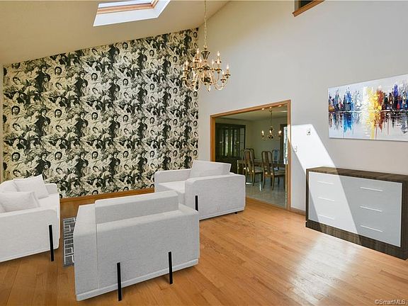 Stunning Contemporary-Style Home with Timeless Features... Hardwood Flooring, Skylight Windows, Recessed Lighting and Natural Lighting Throughout... Master Bed and Bath with Cathedral Ceiling, Skylight Windows and Deep Walk-In Closet... Spacious Eat-In Kitchen with Plenty of Cabinetry and Counter Area; Elegant Dining Room; Formal Living Room with Vaulted Ceiling; Large Living Room with Stone Fireplace and Slider to Outdoor Patio... Situated on a Level Lot in one of Rocky Hill's Most Desirable West-End Neighborhoods... 4-Beds, 2.5-Baths, 3-Car Attached Garage Enjoyed by Original Owner and Ready to be Easily Customized by the New Homeowner... Complimentary Home Warranty Included... Highlights Include: Newer Roof, Newer Andersen Windows, Newer Bulkhead Door, Paved Driveway, Updated Mechanicals for Improved Energy Efficiency and so much more... Professionally Cleaned and ready for Exclusive Showings