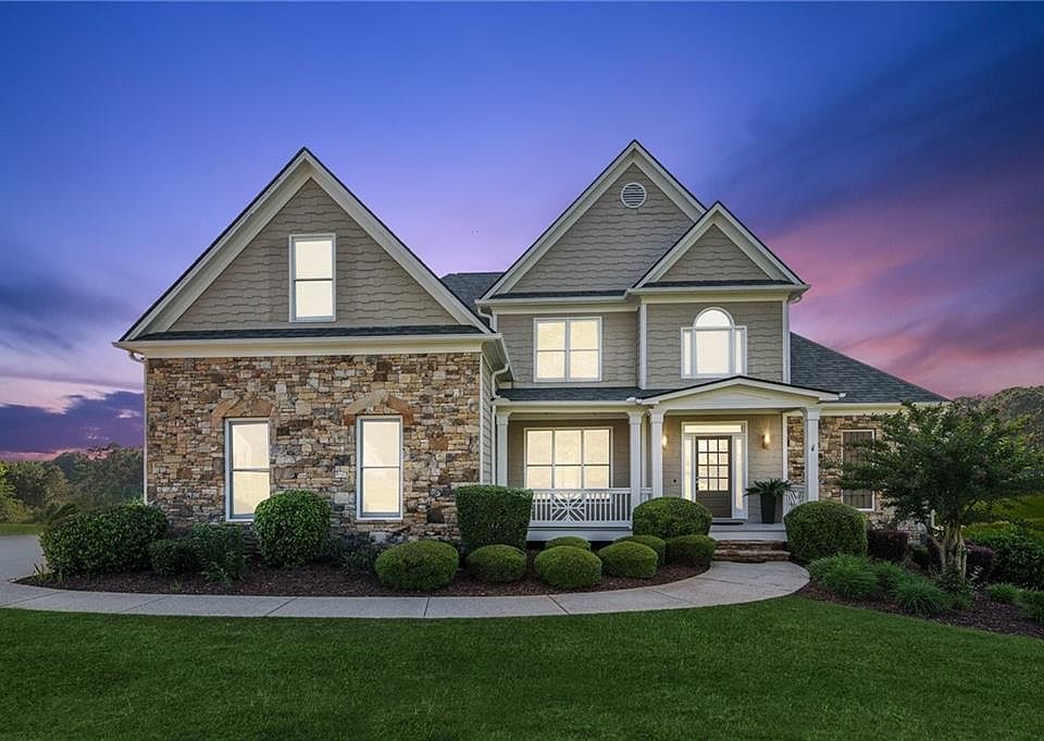 Nestled in the quiet, sought-after GOLD CREEK subdivision, this stunning MOVE-IN READY Traditional-style home offers the best of both worlds: peaceful upscale living with everyday conveniences. Meticulously maintained, RECENT ADDITIONS since April 2025 include: NEW ROOF, NEW CARPET, INTERIOR PAINT, SOME WINDOWS REPLACED, SEPTIC PUMPED AND INSPECTED, AIR DUCTS CLEANED. NEW HVAC added in July 2024.Located near Dawsonville and downtown Dahlonega, you’ll enjoy easy access to shopping, dining, and year-round events. The home sits on a spacious .75 acre cul-de-sac and landscaped lot, and offers stacked-stone accents, and a welcoming covered front porch. An extended driveway, side-entry garage, and gently sloped backyard offer easy access and parking. Inside, you’ll find PRIMARY BEDROOM and BATHROOM on the main level, with fresh paint and new carpet. The showstopper on the main level has to be the hand worked, floor to ceiling inlaid rock fireplace... simply stunning. Hardwood floors are carried throughout the remaining lower level, coffered ceilings, crown molding, and an open layout that flows from formal living and dining rooms to a bright family room and gourmet kitchen. The kitchen includes granite countertops, stainless steel appliances, a travertine backsplash, gas cooktop and an oversized island ideal for prep or casual dining. A covered patio off the kitchen overlooks the private backyard oasis. An additional main-level flex room... perfect for a home office, or short term guest area, with full ensuite bathroom, and laundry area. Upstairs features include.. Three additional bedrooms, and/or massive bonus/media room, dual vanities, a glass shower, and soaking tub. Outside, the backyard is a private retreat oasis, heavily wooded beyond the property line, with plenty of wildlife. Designed for comfort, flexibility, and enduring style, this home is a rare opportunity in a premier subdivision and location. Fall in love with the AMAZING SUNSETS across in the backyard as the deer feed just out of reach.