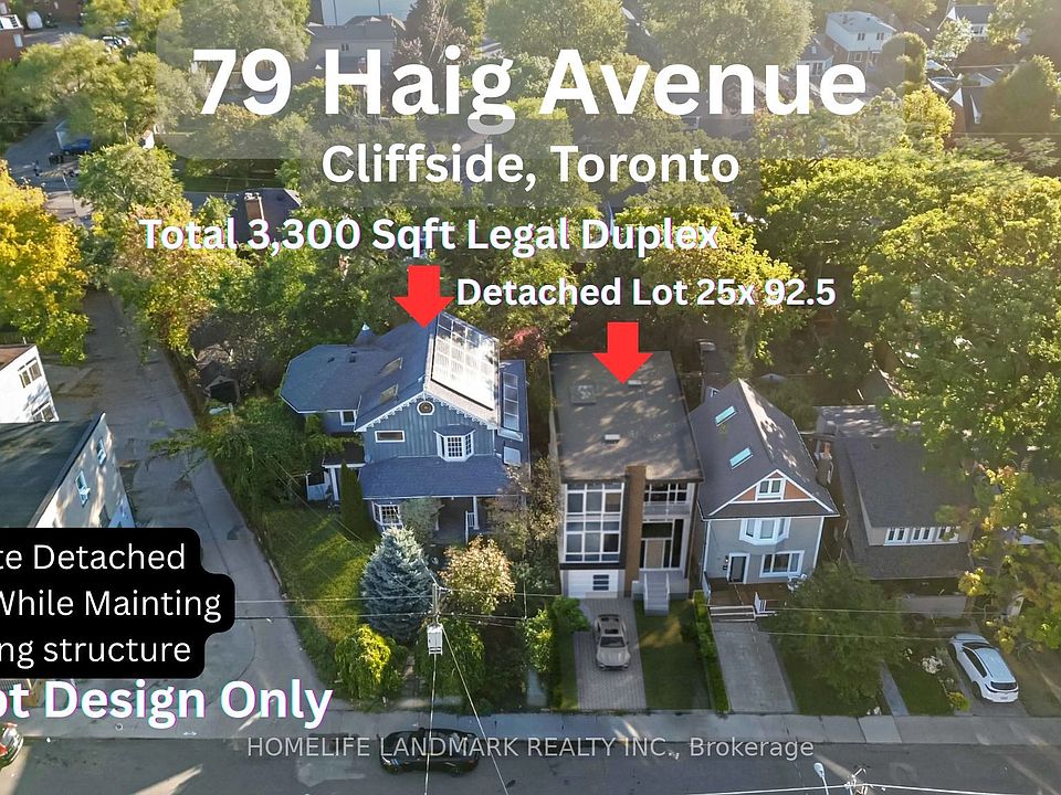 Attention Investors & Builders. LOCATION! LOCATION! LOCATION! Maximize Haig: Your Dream Opportunity Awaits! Welcome To 79 Haig Ave, A Rare And Remarkable Opportunity South Of Kingston Rd In The Highly Sought-After Birch Cliff Community Next To Toronto Hunt Club. This Expansive Lot Has A 61 Ft Frontage Extending To A Whopping 105 Ft At The Rear. The Property Is Currently Set Up With Three Self-Contained Units Across Approx 3,320 Sqft Of Living Space, Potential To Generate $6,000/Month As A Legal Duplex With A Separate Basement Apartment Unit. *Main Floor 3 Bedroom Unit, Northside 2 Storey Unit & Basement Apartment*. The True Value Lies In The Potential: Sever The Lot While Maintaining The Existing Home. Build A Custom Detached Home, Refine The Existing Home, Sell Both Or Live In One, The Opportunities Are Endless. 10 Minute Drive To Downtown Toronto. This Property Offers More Potential Than Anything Else On The Market!