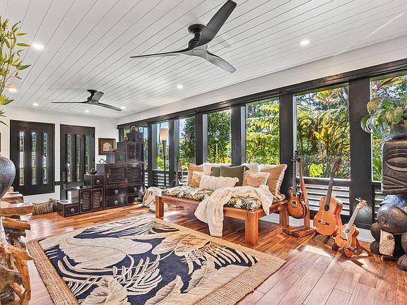 Additional features include a lower-level carport with electric car charger and stairway access to the lanai, a partially finished 1,000 sq. ft. basement for storage or workspace, and a property boundary extending to the middle of the stream. Most furnishings are negotiable, making this a rare turnkey opportunity in one of Hilo’s most sought-after neighborhoods.