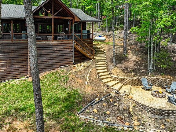Discover an exceptional opportunity to own Lee's Lookout, a luxurious 2-bedroom, 2-bathroom mountain cabin, perfectly positioned between the charming towns of Ellijay and Blue Ridge. This single-level, fully furnished retreat, currently a successful short-term rental, offers breathtaking Rich Mountain views and modern amenities, making it an ideal primary residence, vacation home, or income-generating investment property. Boasting soaring vaulted ceilings, the open-concept living area creates a bright, welcoming atmosphere with a wood-burning fireplace for cozy mountain evenings. Includes a King Master and a Queen Master, each with private en-suite bathrooms, Smart TVs, and blackout blinds for ultimate comfort and privacy. Gourmet Kitchen fully equipped and perfect for entertaining or rental guests. Enjoy a beautifully furnished deck with panoramic mountain views, a large hot tub for stargazing, a firepit for gatherings, and a gas grill. The covered porch is ideal for morning coffee or evening relaxation. Fully furnishedensuring immediate usability including a whole-house generator for uninterrupted power. Currently operating as a highly rated short-term rental through, Lee's Lookout has a proven track record of guest satisfaction, with reviews praising its “gorgeous views,” “peaceful setting,” and “excellent amenities.” Its prime location and luxury features make it a turnkey investment for continued rental income or a personal mountain escape. Nearby attractions include wineries, hiking trails, fishing, whitewater rafting, antiquing, and mountain biking, drawing visitors year-round.