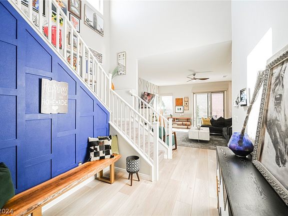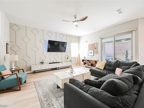 Modern contemporary 4-bed, 2- full bath & 1 3/4 Bath, Open-concept with 3 car garage in the SW of Las Vegas Gated community with common area Pool & Park, Located minutes from Fabulous Las Vegas Strip convenient to I-15 highway, shopping & dining! Amazing Chef's kitchen, Quartz Countertops, Pot Filler, Water Filtration, Upgraded Stainless Steel Appliances, Full House Soft Close Cabinets & Drawers. 1 Bed & Full Bath Located Downstairs. Primary Bedroom is with sitting area and 2 large walk-in Closets, Bath has separate tub/shower. This is a Wonderful Move-in ready home, spacious walk-in pantry a large center island. The home has a convenient upstairs laundry room and walk-in closets in every bedroom. 15k in smart Upgraded shades/Blinds throughout the house, 15K extra large back Patio cover, 10k Tankless Water heater with Warranty in place, Luxury Vinyl flooring throughout downstairs.Back yard is low maintenance. Beautifully desert landscaped is perfect for outdoor gatherings.