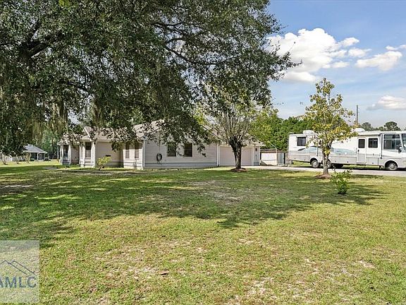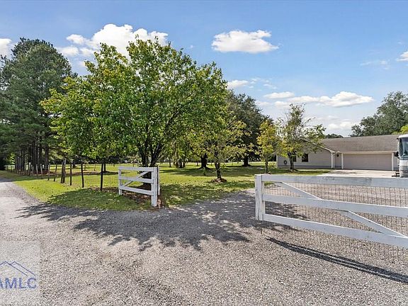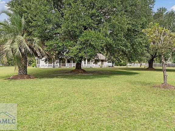 Discover the charm of country living with city convenience. Ranch style home on 3.05 Acres in the heart of Flemington. Surrounded by pecan and fruit trees and fully fenced, this property offers a peaceful setting just minutes from Ft Stewart.Step inside from welcoming front porch overlooking expansive front yard, to the foyer with ceramic tile flooring that that continues through formal dining room and kitchen.Formal dining room has chair rail detailing and wallpaper accents. The kitchen has oak-finish cabinetry, stainless steel appliances, built-in microwave,breakfast bar, sunny breakfast nook with bay window. The Living room is the centerpiece of the home featuring decorative beam ceiling and a striking tabby wood-burning fireplace with raised heart, Double french doors lead to a covered deck. The master suite with Bay Window includes walk -in closet, ceiling fan, carpet flooring, while two additional bedrooms feature ceiling fans, blinds, and spacious closets. The hall bath offers long vanity, linen storage and wood vinyl look flooring. Laundry room with built in cabinets . Outdoor living is easy with a screened back porch, and a covered deck all overlooking the expansive backyard, oversized 2 car garage , 2 storage buildings and plenty of space for boats, RV's and Cars make this property a rare find! With a few personal touches this home has endless potential and is being sold "as is". Check it out today!