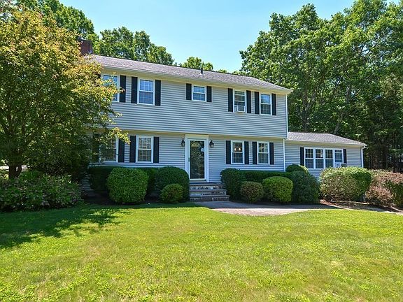 Located on a quiet & scenic country road in Grafton, this lovely Garrison-style home features 4 bedrooms, 2.5 bathrooms, a 1-car garage, & over 2,000 square feet. Wonderfully maintained throughout & move-in-ready! The first floor boasts formal & informal living spaces, including a front-to-back living room w/ a brick fireplace. The eat-in-kitchen features oak cabinetry, granite countertops, & stainless steel appliances. The spacious family room offers beamed/vaulted ceilings, a beautiful brick fireplace, & a slider to the large wood deck overlooking the private yard. The 2nd floor offers a primary suite w/ a private 3/4 bath & double closets, as well as 3 additional bedrooms which share a guest bath. Enjoy a picturesque setting & landscaped grounds with mature plantings. Centrally located & within minutes to shopping, dining, commuter rail, routes 90/495/146, Hassanamessit Woods, & Grafton Land Trust walking & hiking trails!