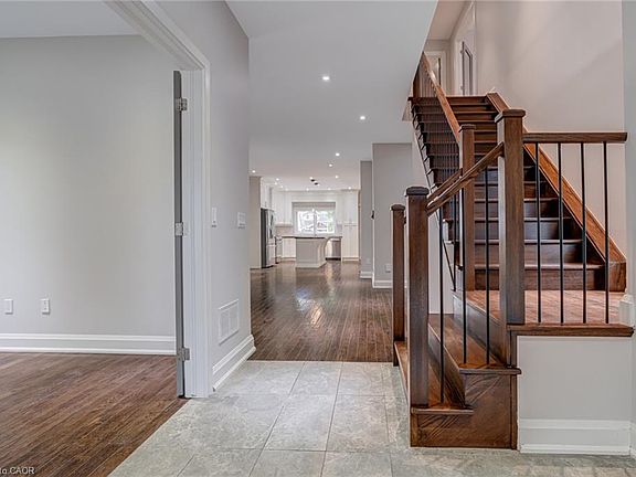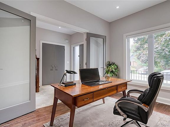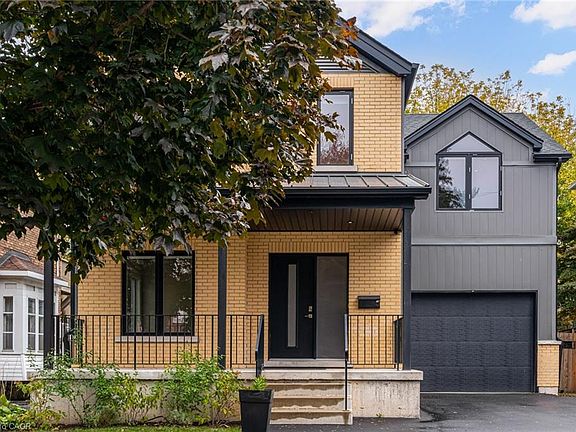 Custom built in 2018, this Edwardian-inspired residence blends timeless character with modern sophistication. Situated on a 42 x 100 ft property with striking curb appeal and a large covered verandah in Hamilton’s sought-after Delta West neighbourhood, it’s just one block from Gage Park and steps to the scenic Escarpment Rail Trail. Offering 2,591 sq. ft. of above-grade living space, the home impresses with a 9-foot ceiling and a bright, open-concept design ideal for family living and entertaining. The chef’s kitchen features granite counters, a centre island, and brand-new stainless-steel appliances, opening seamlessly to the family room with a gas fireplace. A private main-floor office overlooks the charming tree-lined street, while a powder room and convenient laundry with inside garage entry add everyday functionality. Upstairs, four spacious bedrooms include a stunning primary suite with vaulted ceilings, a walk-in closet, and a spa-like 5-piece ensuite with a soaker tub and glass shower. Step out onto the private balcony for serene views of the Niagara Escarpment. A remote-controlled skylight fills the upper level with natural light and promotes refreshing airflow throughout the home. The lower level offers 9-foot ceilings, a separate entrance, and roughed-in plumbing—ready to be transformed into a future income suite, recreation area, or multi-generational living space. Outside, enjoy a fully fenced backyard with a large entertaining deck, gas BBQ hookup, and parking for five vehicles including an oversized attached garage. Perfectly positioned in one of Hamilton’s most vibrant and walkable areas, this exceptional home captures the best of Delta West living—steps to parks, trails, and Hamilton’s emerging dining and cultural scene. Basement Notes: The addition of a third steel horizontal support beam eliminates the need for support posts so the entire basement area is unencumbered. There is a backflow preventer and a recirculating hot water feature.